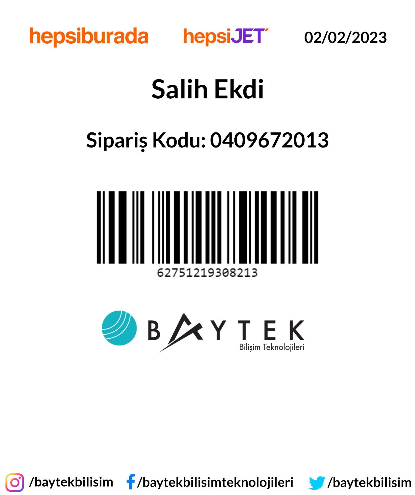 Baytek Bilişim Kargo Entegrasyonu