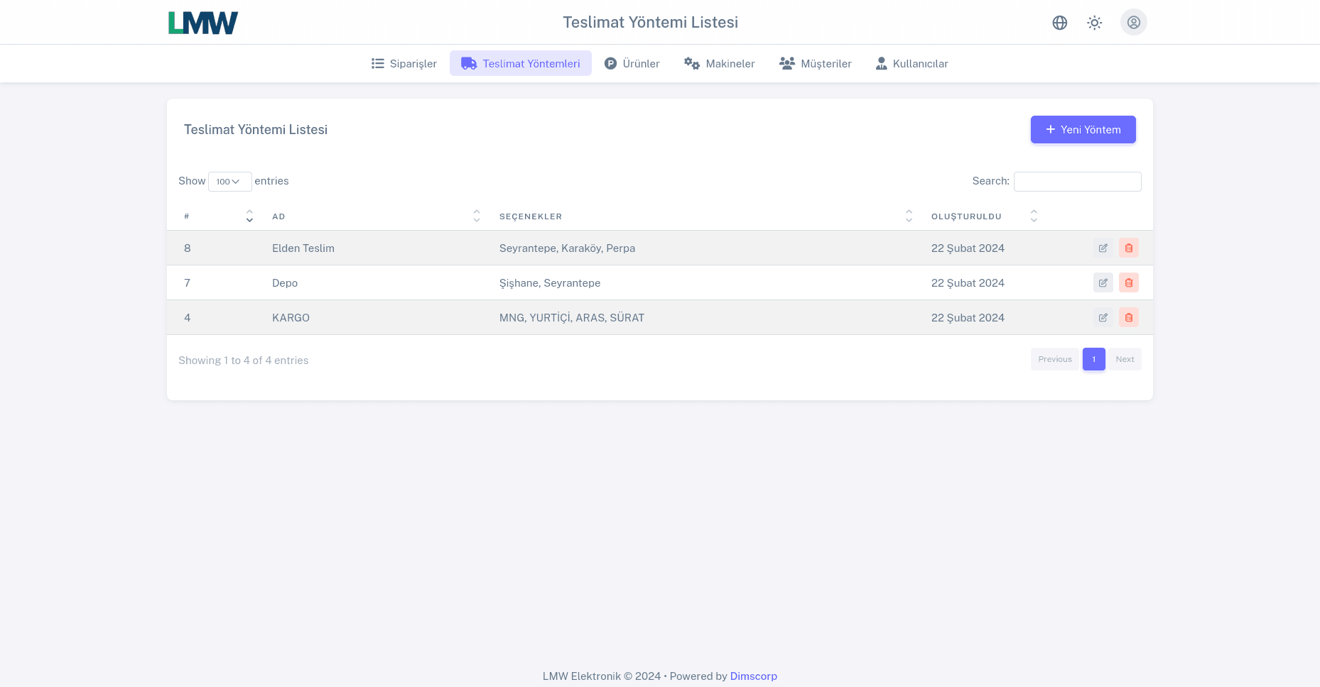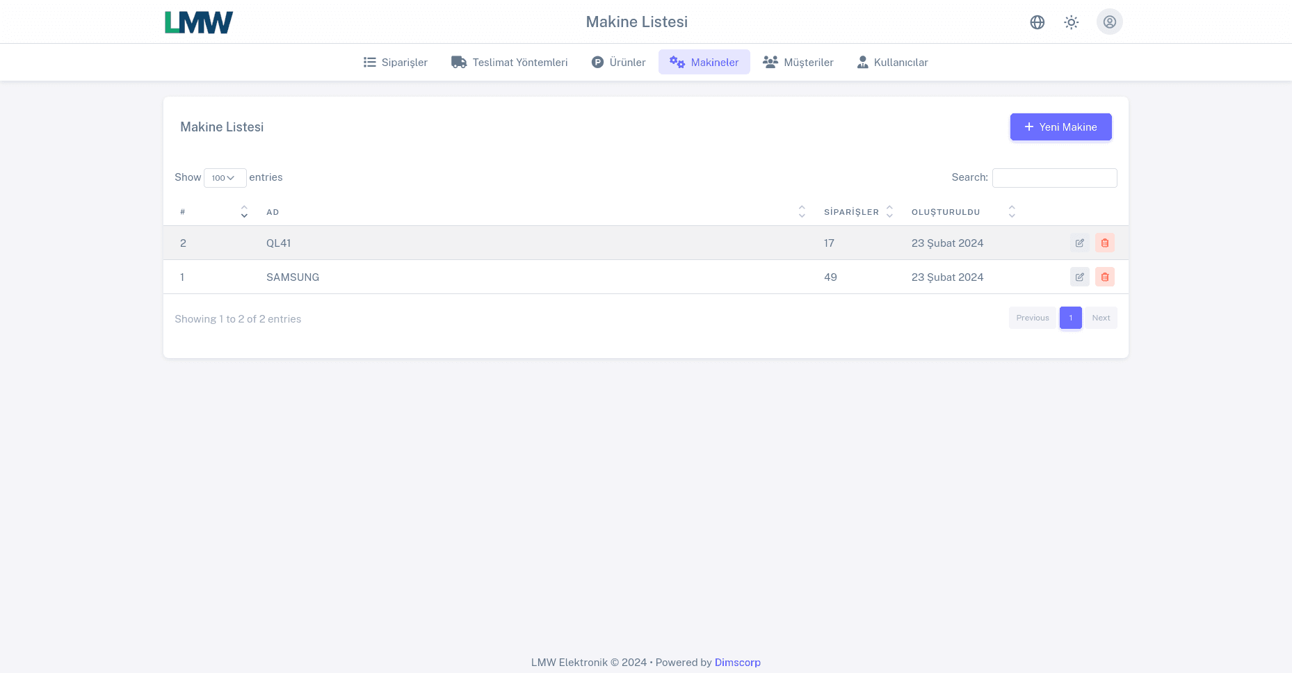 Sistem siparişinin hangi makinede ve hangi çalışan tarafından işlendiğinden, hangi müşteri için hazırlandığına, fatura durumundan teslimat yönetimine kadar birçok değişkeni kullanıcı dostu bir panel üzerinden takip etmeyi sağlar. LMW Ürün Takip Sistemi, iş süreçlerini optimize etmek ve verimliliği artırmak için tasarlanmıştır. Yöneticiler, panel aracılığıyla fabrikada olmasa bile siparişlerinin her aşamasını kontrol edebilir ve gerektiğinde müdahalede bulunabilirler.