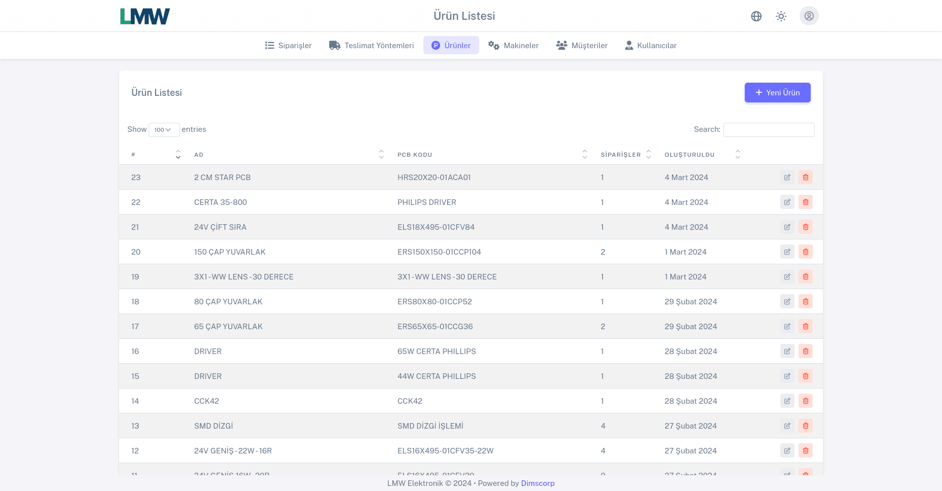 Dimscorp Yazılım Danışmanlığı olarak Modulux Aydınlatma firması için geliştirdiğimiz LMW Sipariş Takip Sistemi yöneticilerin oluşturdukları siparişlerin her aşamasını detaylı bir şekilde izlemelerine olanak tanır.