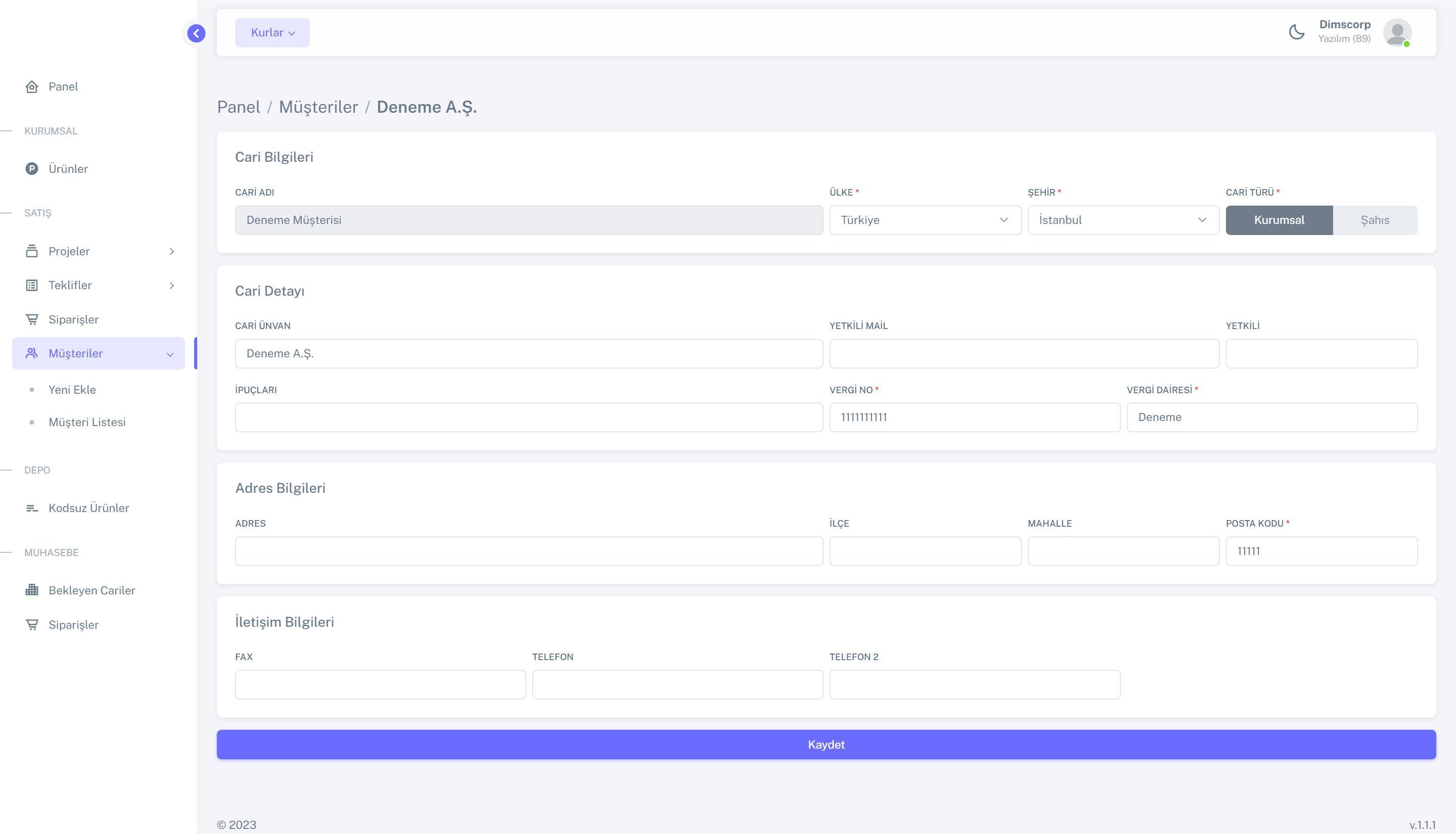 Proje ve teklif modülünde oluşturduğunuz müşterileri; listeleyebilir, düzenleyebilir ve pasif duruma geçirebilirsiniz.