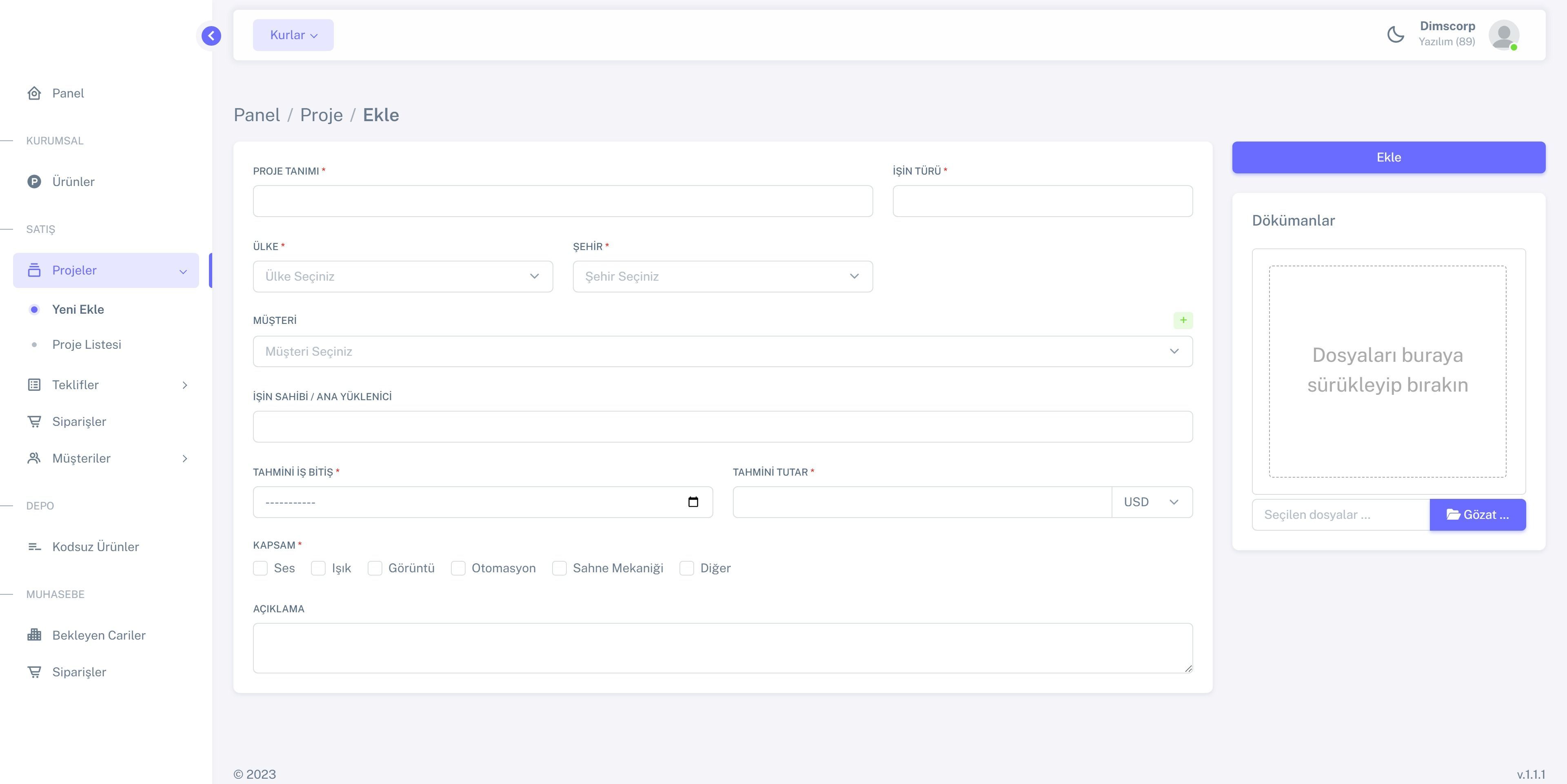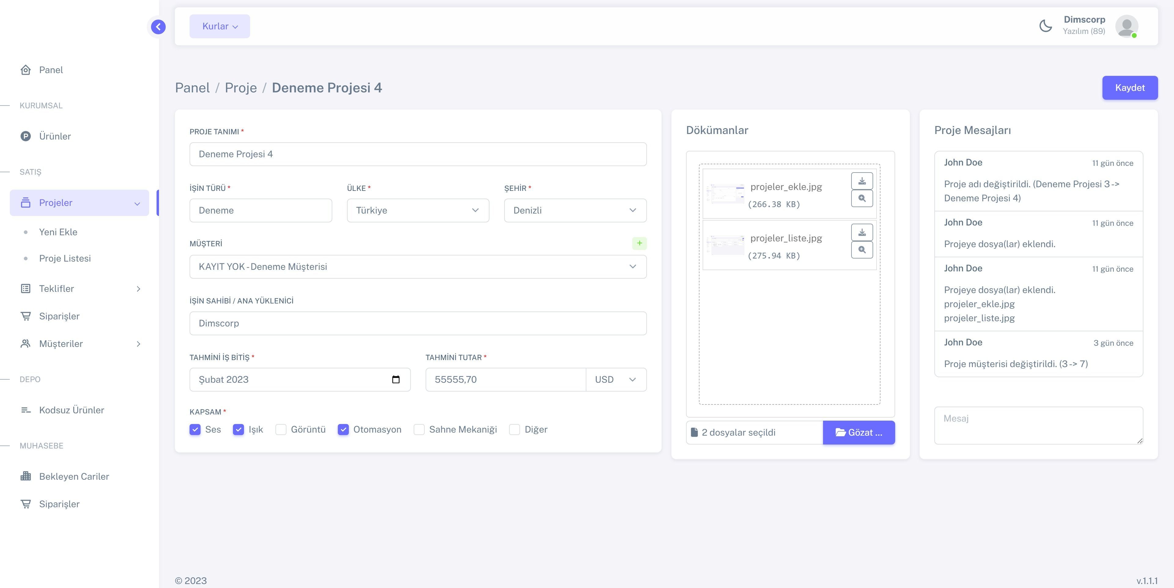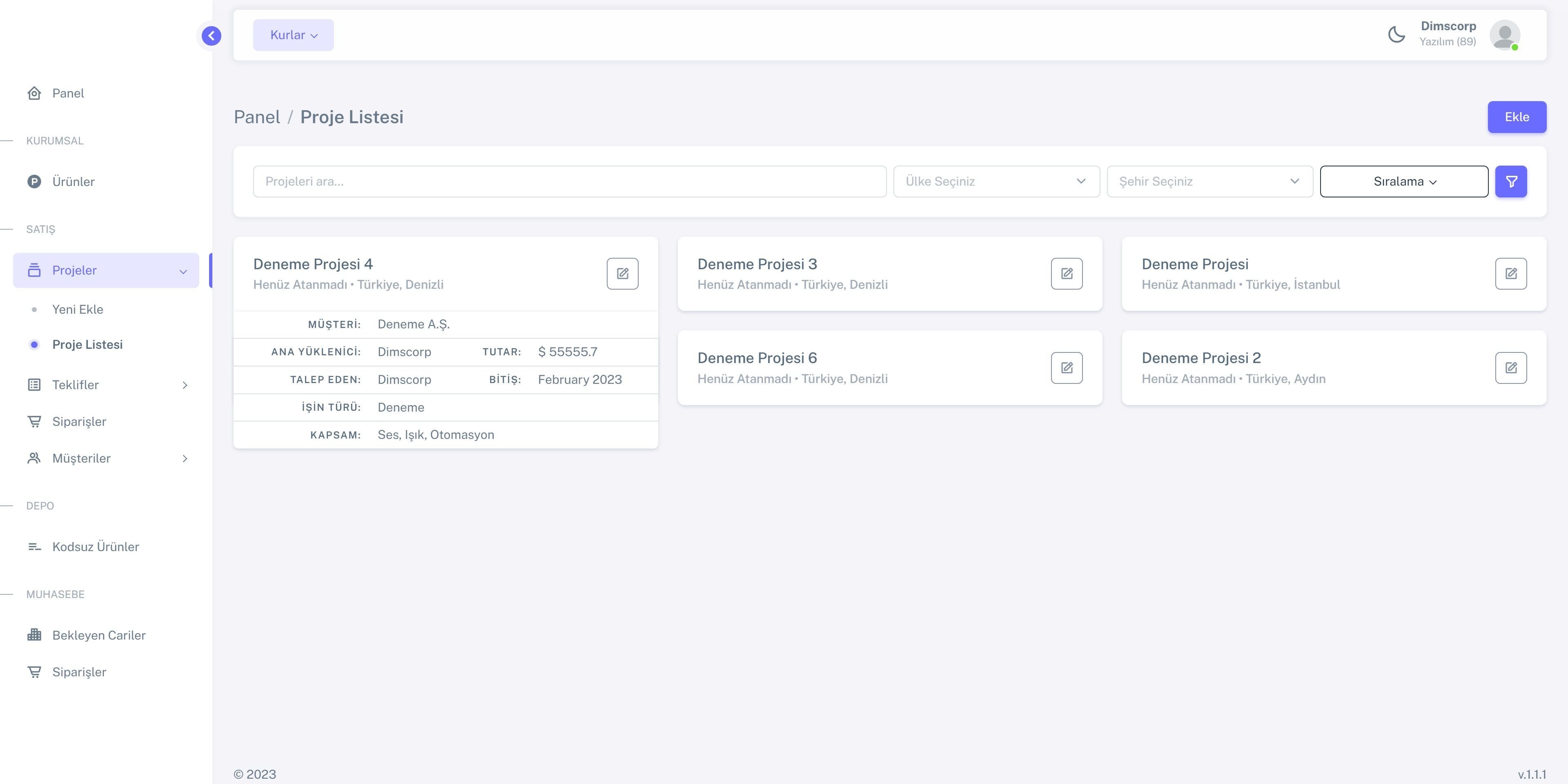 Proje modülünde müşteri bazlı proje kayıtları oluşturabilir, bu projelerin durum ve ilerleme takibini yapabilirsiniz.