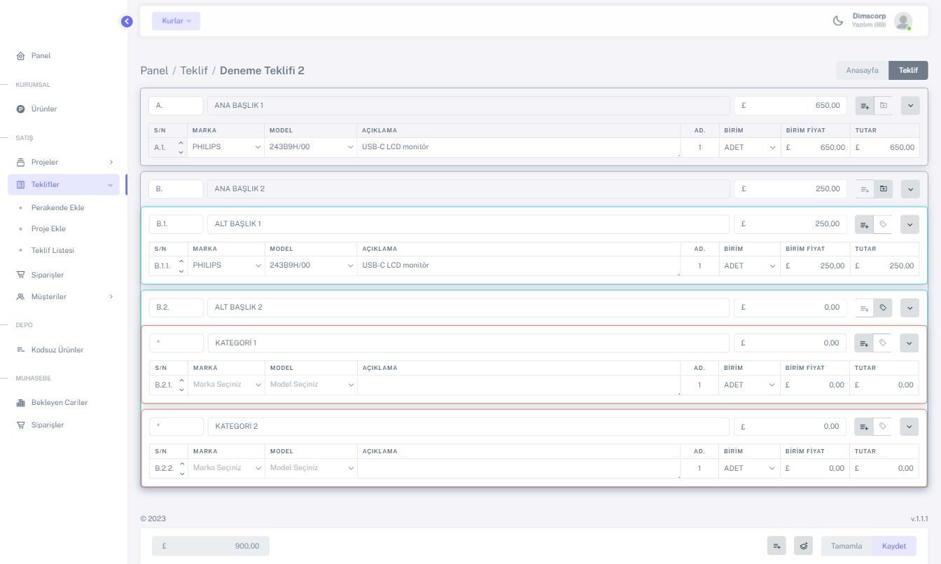 Hızlı teklif yazmanız için birçok eklenti mevcuttur. Firmanıza özel teklif formatlarında çıktı alabilirsiniz.